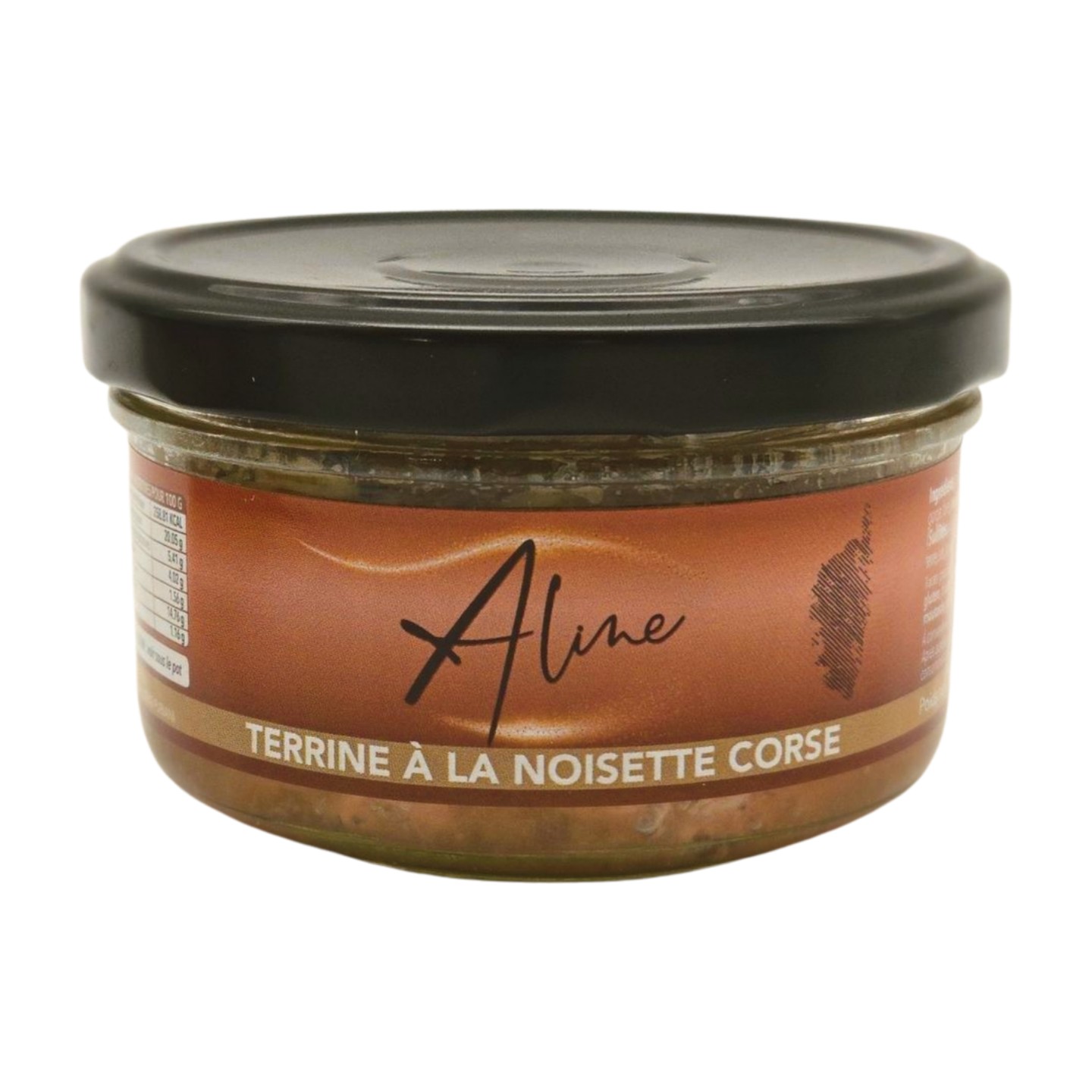 Ingrédients: viandes de porc (France)(échine, gorge, foie), NOISETTES (Corse) (12,2%), vin blanc (SULFITES), oignons, carottes, fécule de pomme de terre, sel, poivre. Poids: 150g.